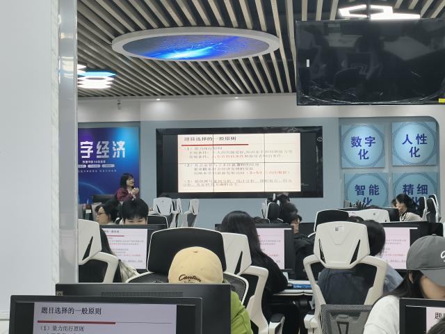 5月4日,在慎思楼数字经济综合模拟实训中心,金融工程专业的毕业论文写作指导讲座率先开展。金融工程专业负责人舒雯阐述了毕业论文写作的意义,详细讲解了论文撰写的步骤,强调了论文写作规范。她谈到,要学会灵活运用基础研究方法,提出自己的创新性问题,选题切忌“空、大、旧、悬、偏”的原则,并指出了当代大学生在论文写作中的雷点。随后,其他各专业的论文讲座也陆续开展,各班同学们纷纷表示此次讲座内容丰富,具有很强的指导性和实践性,受益匪浅。