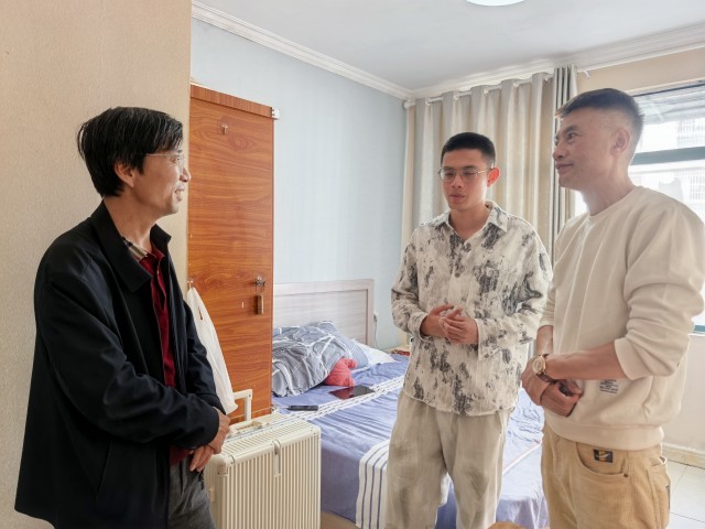 走访过程中,余嘎一行实地查看了外宿学生的居住环境、消防安全设施、用电用气安全等情况,并向学生及家长详细了解其在学习生活、住宿通勤等方面的状况,叮嘱同学们要增强安全防范意识,注意人身财产安全和交通安全,自觉遵守校纪校规,保持良好作息习惯,同时强调大家遇到困难要及时向学校和辅导员反馈。