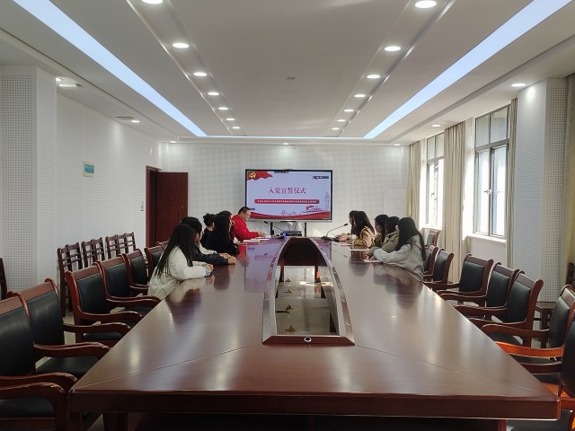 11月28日下午,数经学院党总支于明辨楼KS403会议室举行预备党员入党宣誓仪式,党总支宣传委员、教工党支部书记吕飞,党总支组织委员、学生党支部书记潘玲玲,党总支纪检委员廖佳丽及教工党支部陈艳出席,9名新接收的预备党员及部分入党积极分子代表参加。